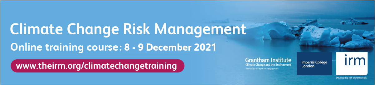 The IRM and Imperial College London have teamed up to deliver the go-to practical training course on Climate Change Risk Management. Building on world-leading expertise in the science of climate change, business management and enterprise risk management, this practical course not only allows learners to explore why managing climate change risk is important to their organisation but also how to do it. The next course will run 8-9 December, more info here: https://www.theirm.org/training/public-courses/climate-change-risk-management/